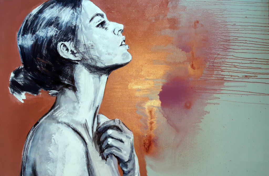 ”Angel” akryyli ja pastelliliitu kankaalle,120×100, 2016
